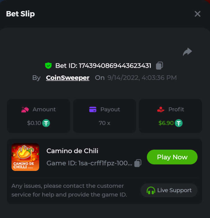 7. hot volcano - https://bc.game/sd/?sd=10SYOIO7ZEO93N - 1513.15x Bet ID: 1743939335900390528 camno de chilli - https://bc.game/sd/?sd=10SYQ0QXTML2QB - 70 x Bet ID: 1743940869443623431 candy 100x - https://bc.game/sd/?sd=10SYQGYJ50T3BN Bet ID: 1743941303908381191 Wolf Hiding - Bet ID: 1743934738919953597 - 500.20x https://bc.game/sd/?sd=10SY237RTTWDfN