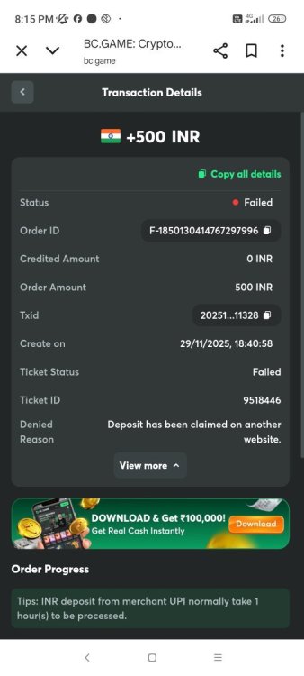 Deposit not credit even merchant has received payment successful