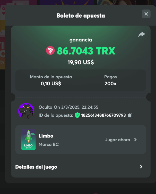 1. Easy: 7. Bet id: 1825516554328491554 Mediun 3. Bet ID: 1825611243261545763 4. Bet ID: 1825518937943449121 7. Bet ID: 1825521915950210851 Hard 1 Bet ID: 1825514808212983586 6. Bet ID: 1825613488766709793 7. Bet ID: 1825613322233272611