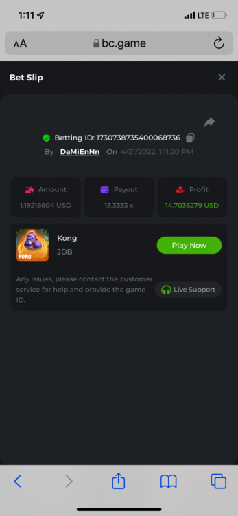 2. Limbo $2.00 bet 100x Limbo-Win 74011280171599051 7/15/2022, 9:47:30 AM $200.00 ☝lost bet ID link. So copied and pasted from my wallet transactions. https://bc.game/sd/?sd=10ORWSSCI1A58Z $4.00 bet 20x https://bc.game/sd/?sd=10ORXEQA92L4B7 $0.25 bet 500x Bounty.